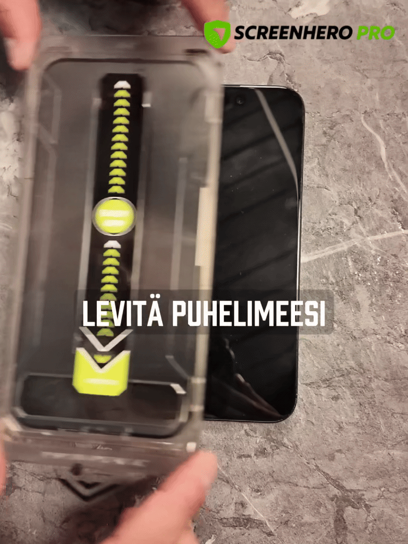 ScreenHero on sotilasluokan panssari lasista valmistettu näytönsuoja, joka asennetaan erikoissuunnitellulla asennuslaatikollamme. Vain muutamassa sekunnissa saat täysin pölyttömän ja kuplattoman näytön, joka on täysin naarmu- ja vesitiivis ja käyttövalmis heti. Tutustutaan ScreenHero™:hon